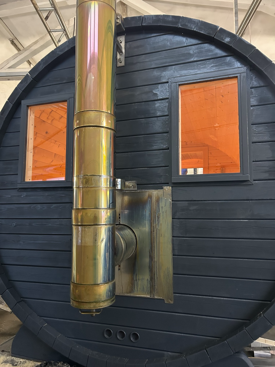 Großer Saunaraum mit holzbefeuertem Ofen - Platz für bis zu 8 Personen, die gemeinsam schwitzen, entspannen und den Alltag vergessen können.
